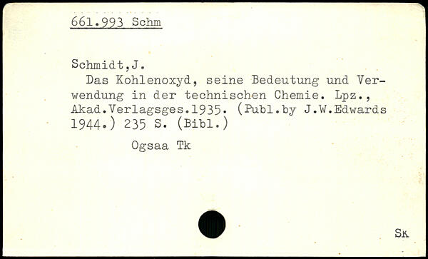 Das Kohlenoxyd, seine Bedeutung und Verwendung in der technischen Chemie. Lpz., Akad.Verlagsges.1935, (