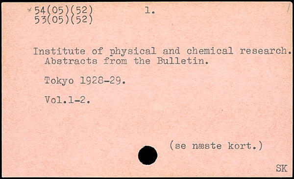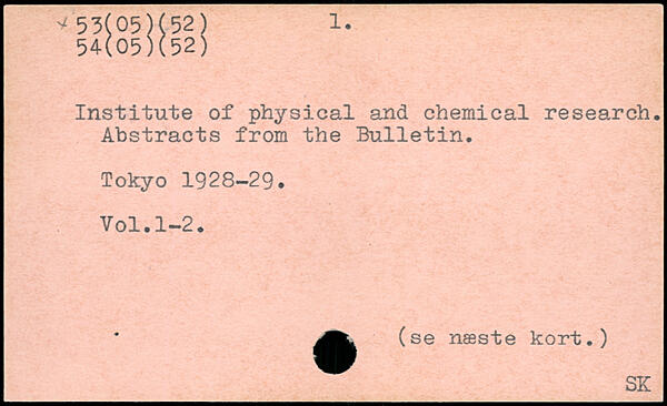 Institute of physical and chemical research. Abstracts from the Bulletin.
