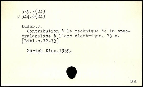 Contribution à la technique de la spec-tralanalyse à l'arc électrique