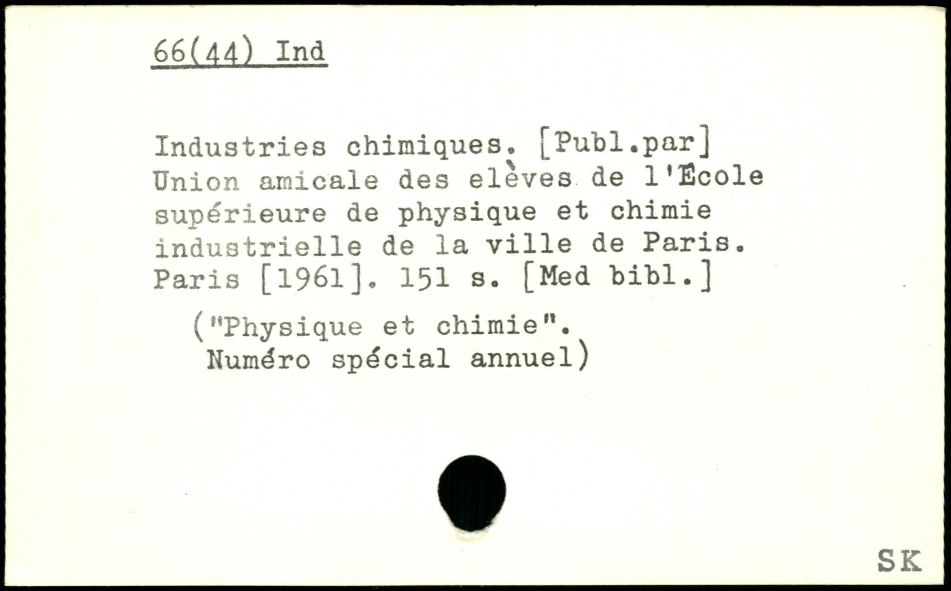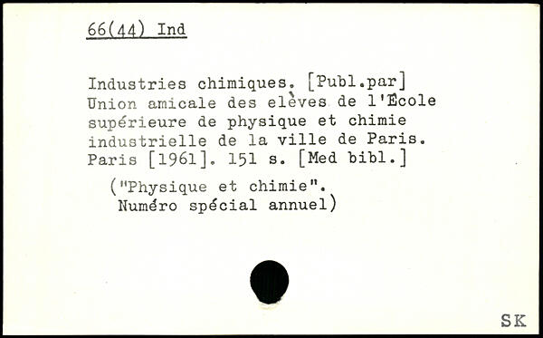 Industries chimiques. [Publ.par] Union amicale des elèves de l’Ecole supérieure de physique et chimie industrielle de la ville de Paris.