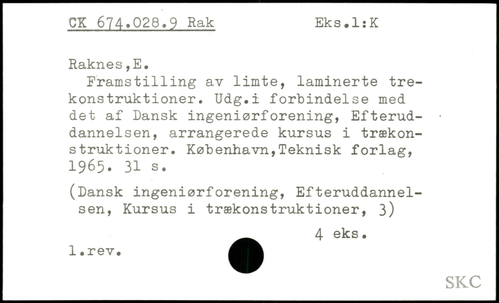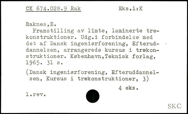 Pramst1111ng av limte, laminerte trekonstruktioner. Udg.i forbindelse med det af Dansk ingeniørforening, Efterud-. dannelsen, arrangerede kursus i trækonstruktioner.