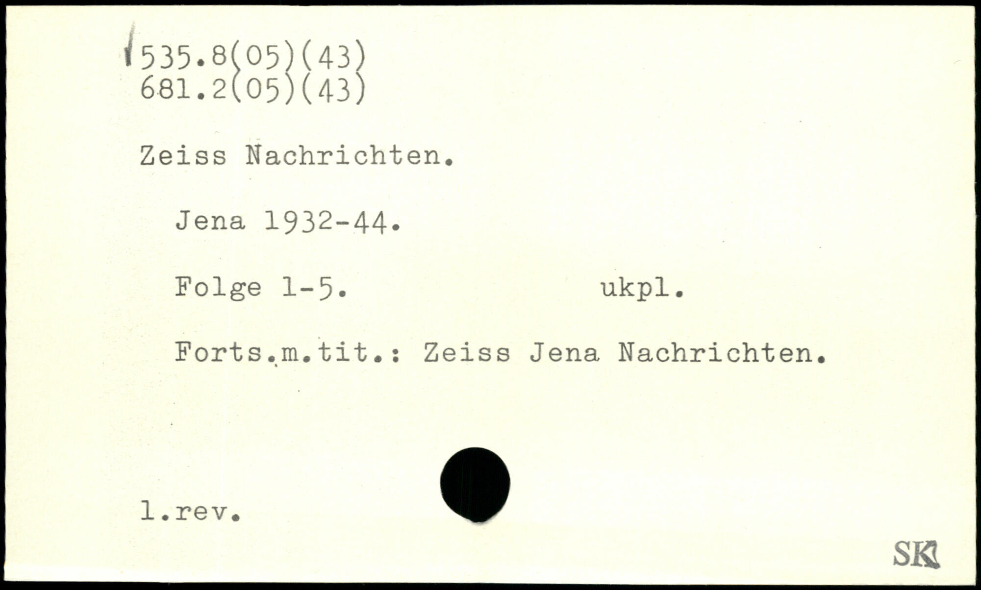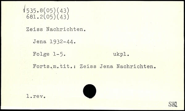 Zeiss Nachrichten. Jena 1932-44. Folge 1-5. ukpl. Forts.m.tit.j Zeiss Jena Nachrichten. SKI