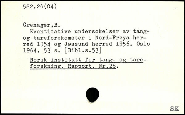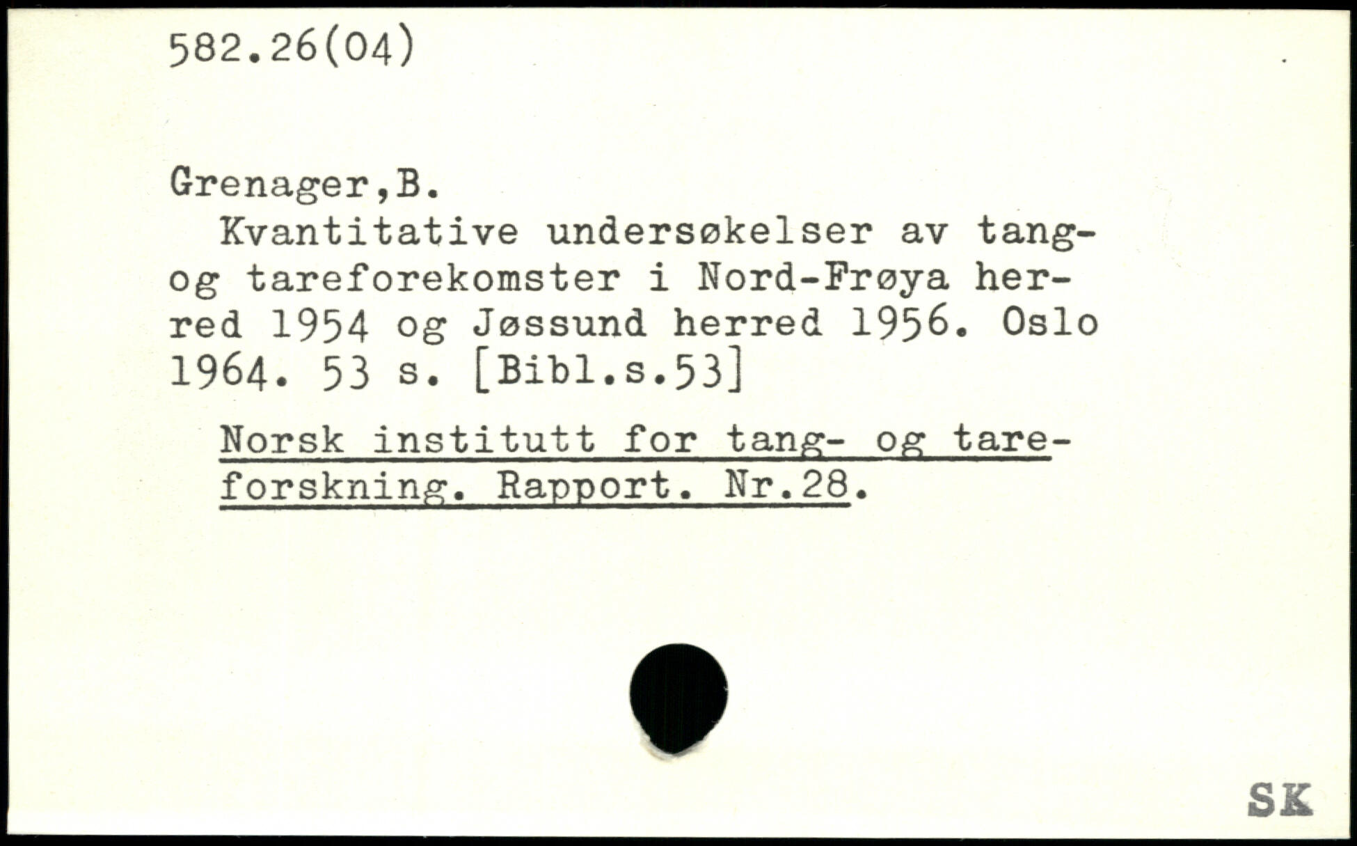 Kvantitative undersøkeiser av tang-| og tareforekomster i Nord-Frøya her red 1954 og Jøssund herred 195&. Oslo 1964.