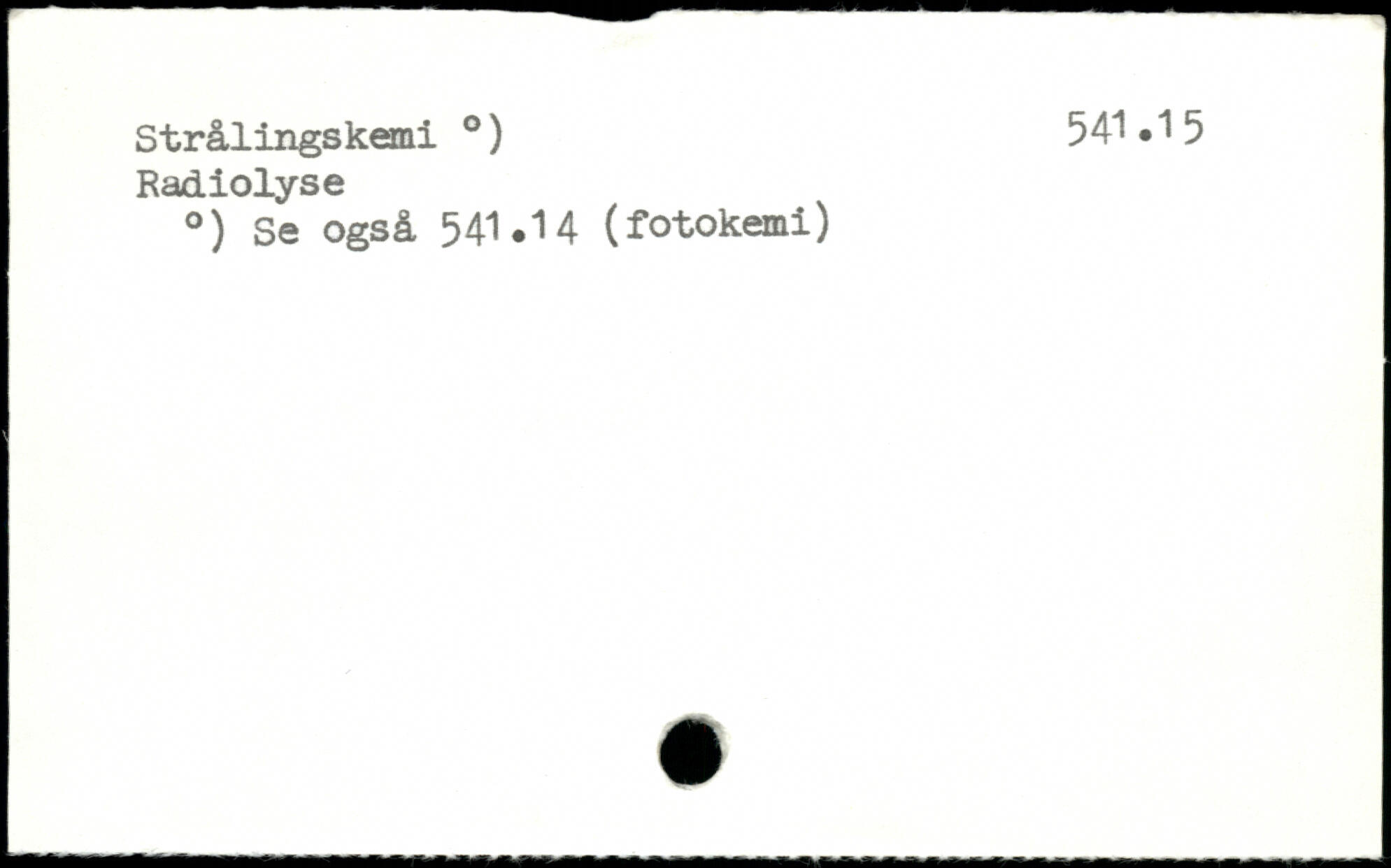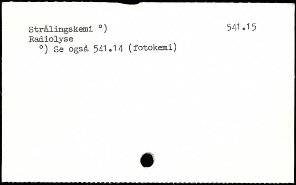 Strålings kemi .) 54^.15 Radiolyse .) Se også 541.14 (fotokemi)