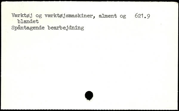 Værktøj og værktøjsmaskiner, alment og 621.9 blandet Spåntagende bearbejdning