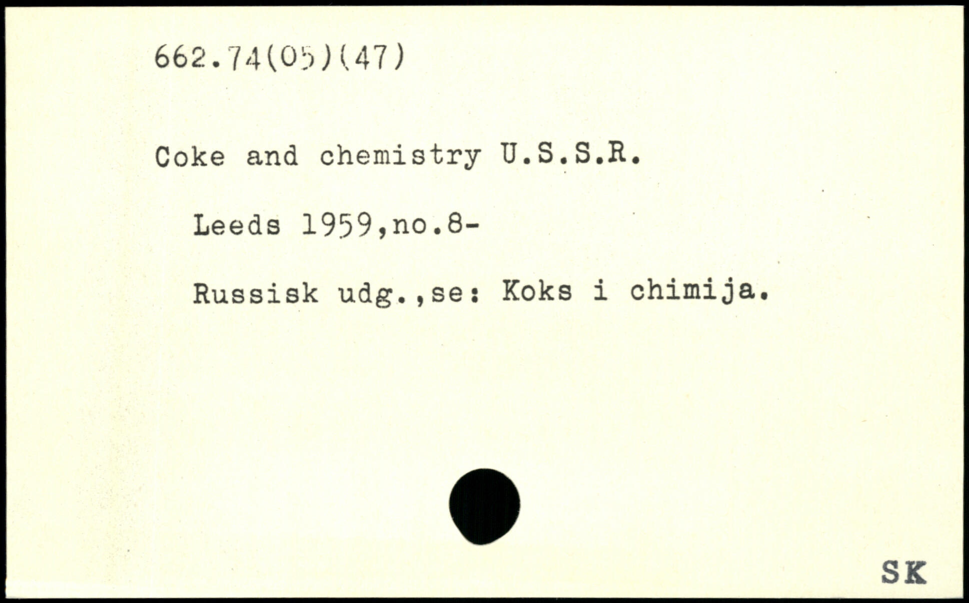 Coke and chemistry U.S.S.H. Leeds 1959>no.8- Russisk udg.,se: Koks i chimija.