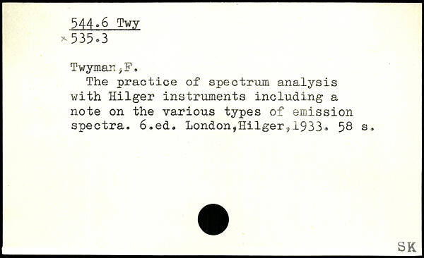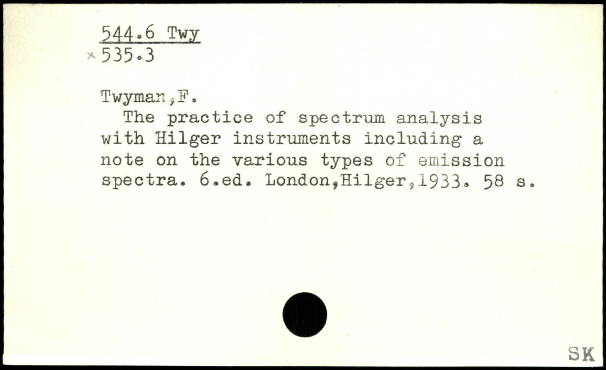The practice of spectrum analysis with Hilger instruments including a note on the various types of emission spectra.
