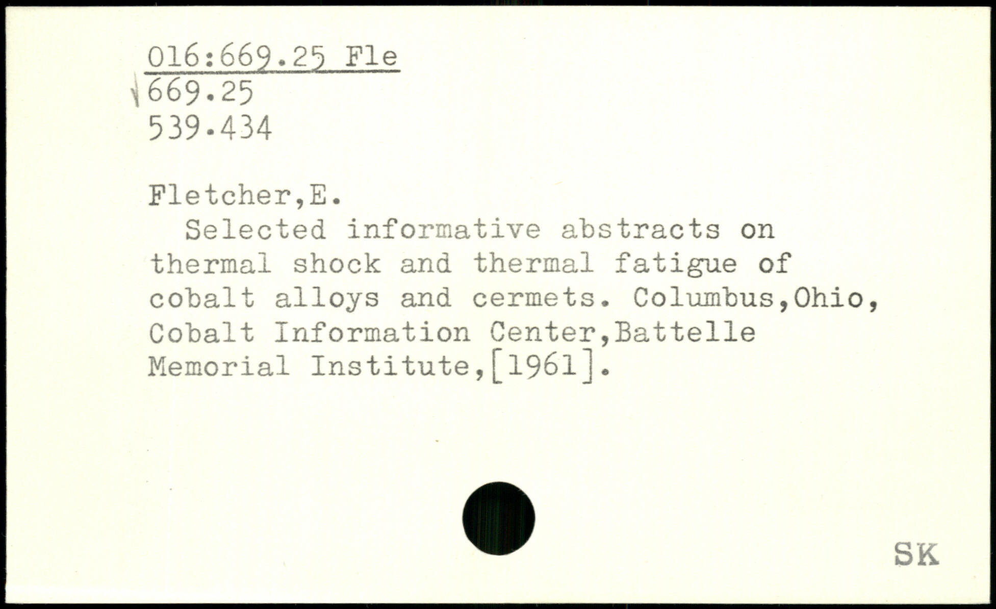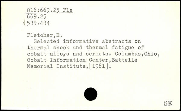 Selected informative abstracts on thermal shock and thermal fatigue of cobalt alloys and cermets.