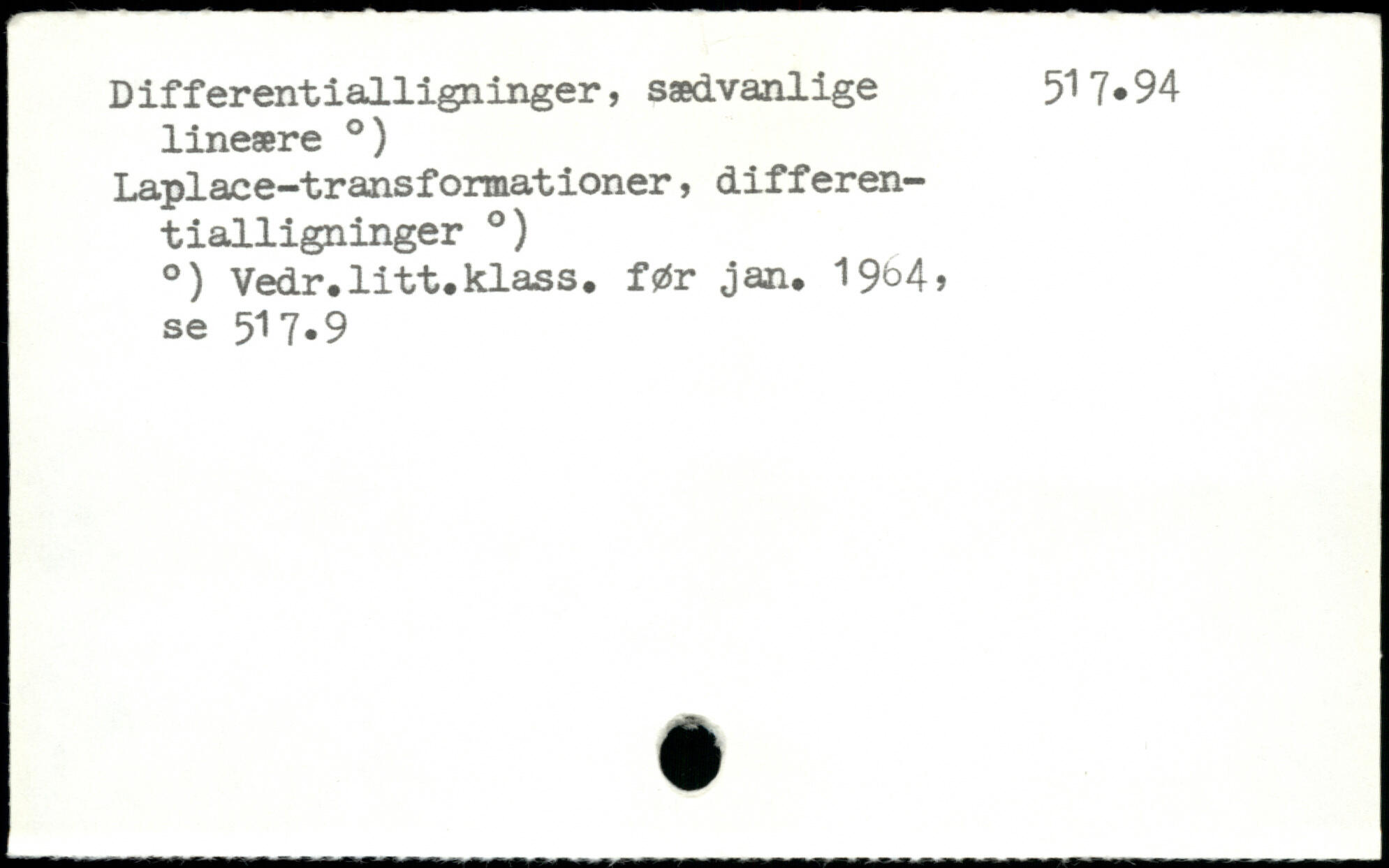Differentialligninger, sædvanlige 51 7.94 lineære .) Laplace-transformationer, differentialligninger .) .) Vedr.litt.klass. før jan, 19^4, se 517.9