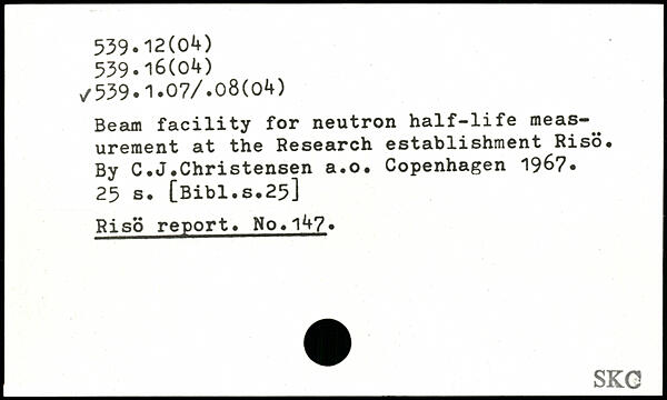 Begun facility for neutron half-life meas-^ ureinent at the Research establishment Riso. By C.J.Christensen a.o.