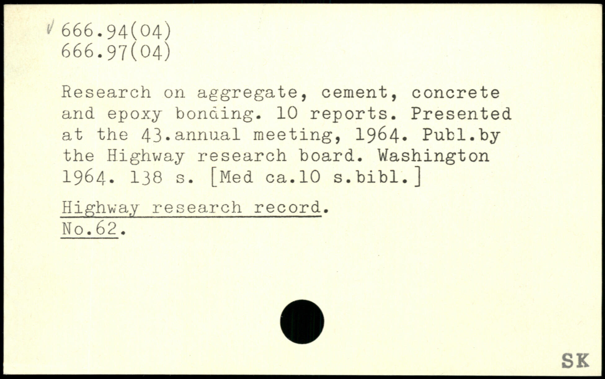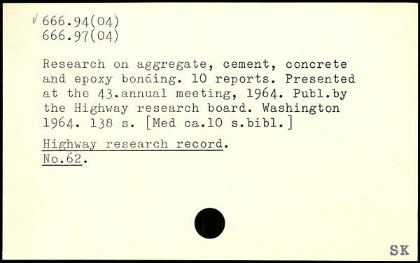 Research on aggregate, cement, concrete and epoxy bonding. 10 reports. Presented at the 43.annual meeting, 1964. Put1.by the Highway research board.