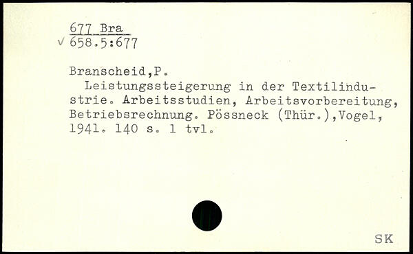 Leistungssteigerung in der Textilindustrie. Arbeitsstudien, Arbeitsvorbereitung, Betriebsrechnung. Pössneck (Thür.),Vogel, 1941