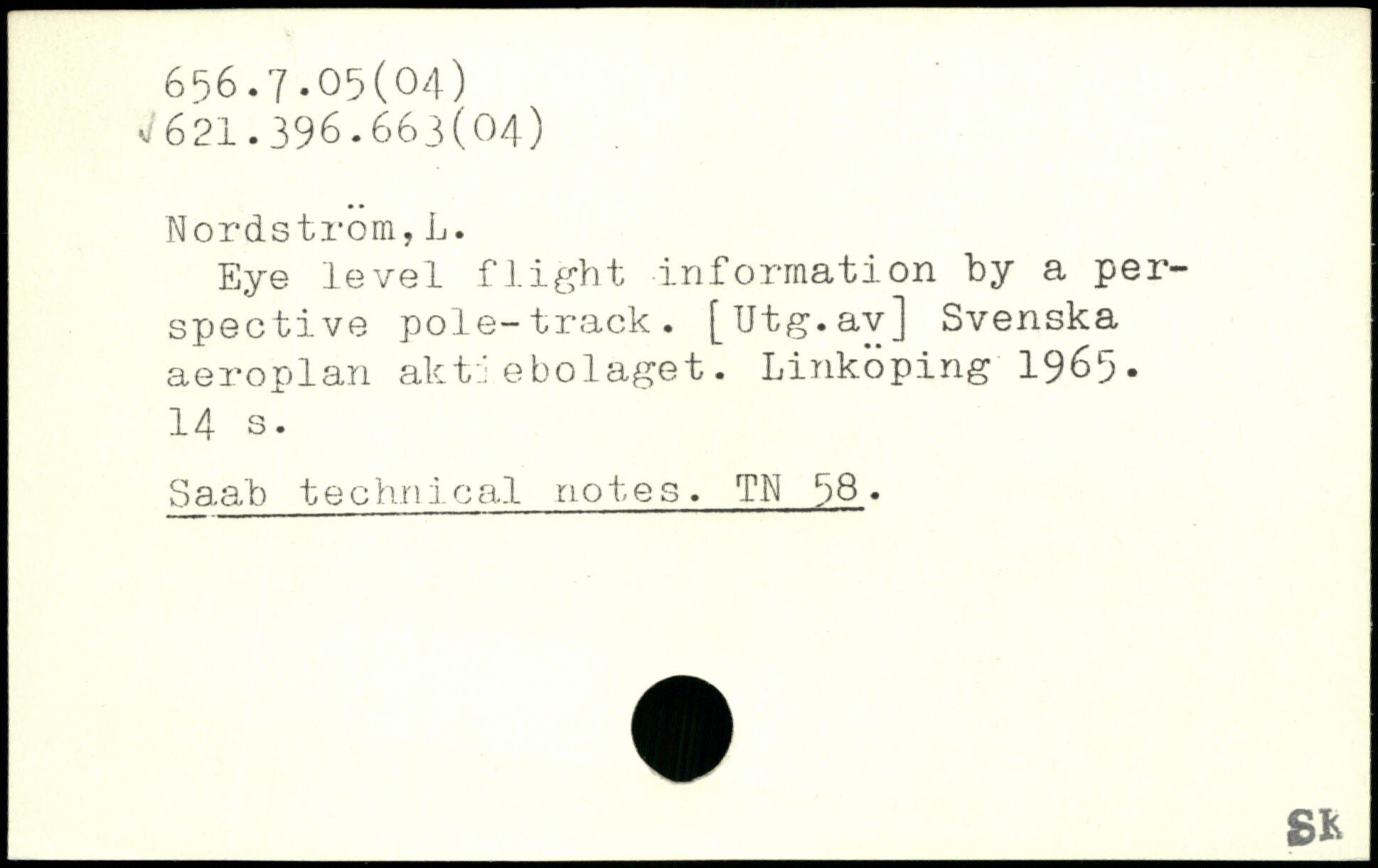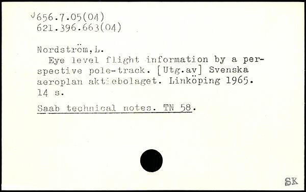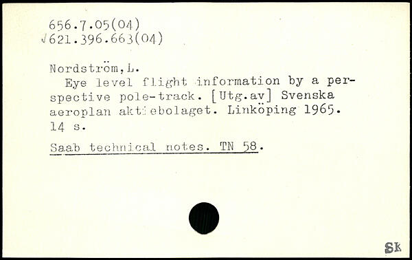 Eye level flight information by a perspective pole-track. [Utg.av] Svenska aeroplan aktiebolaget. Linköping 1965.