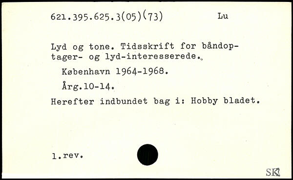 Lyd og tone. Tidsskrift for båndoptager- og lyd-interesserede