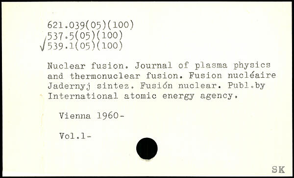 Nuclear fusion. Journal of plasma physics and thermonuclear fusion. Fusion nucléaire Jadernyj sintez. Fusion nuclear.