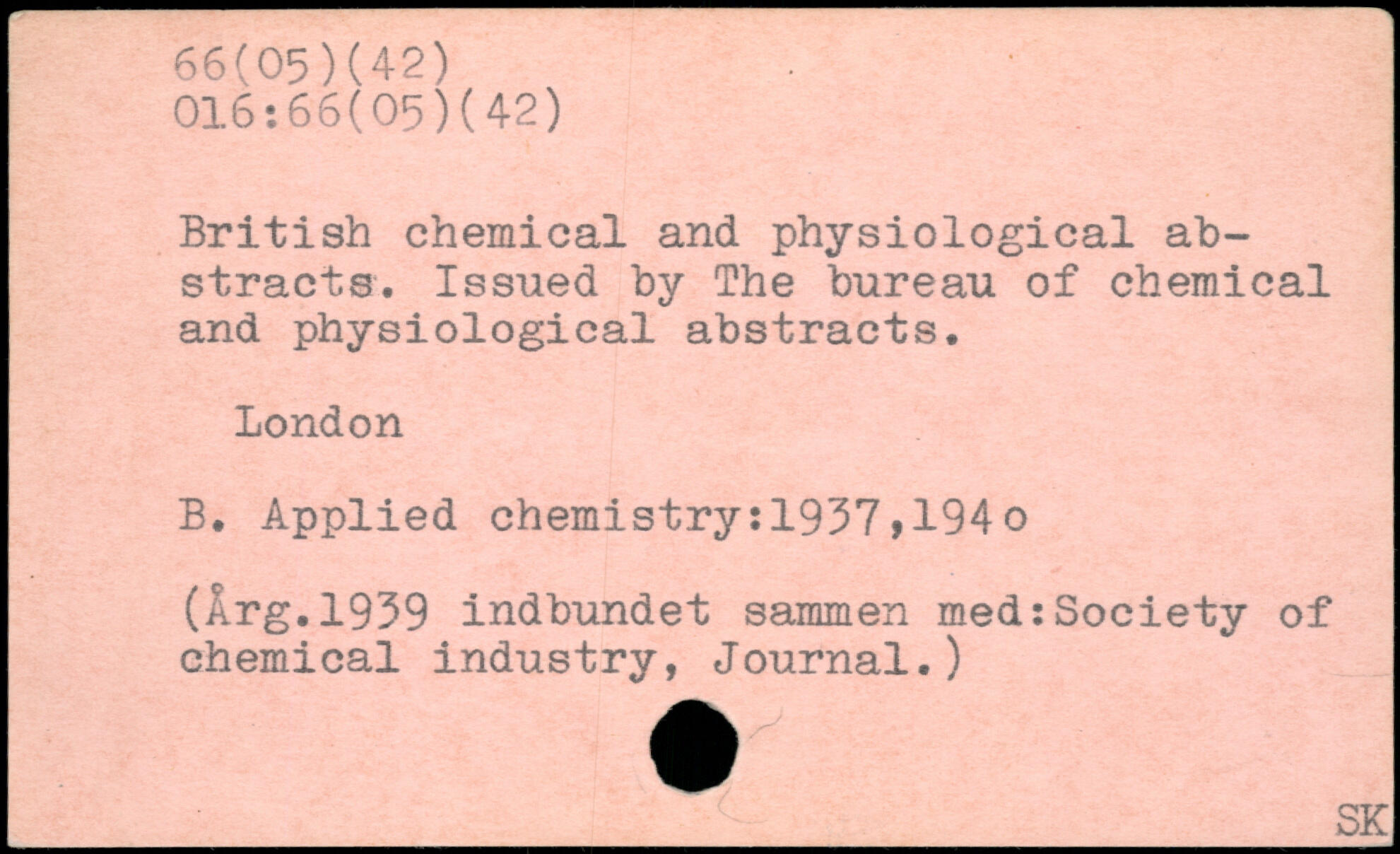 British chemical and physiological abstracts. Issued by The bureau of chemical and physiological abstracts. London B. Applied chemistry:1937,194o