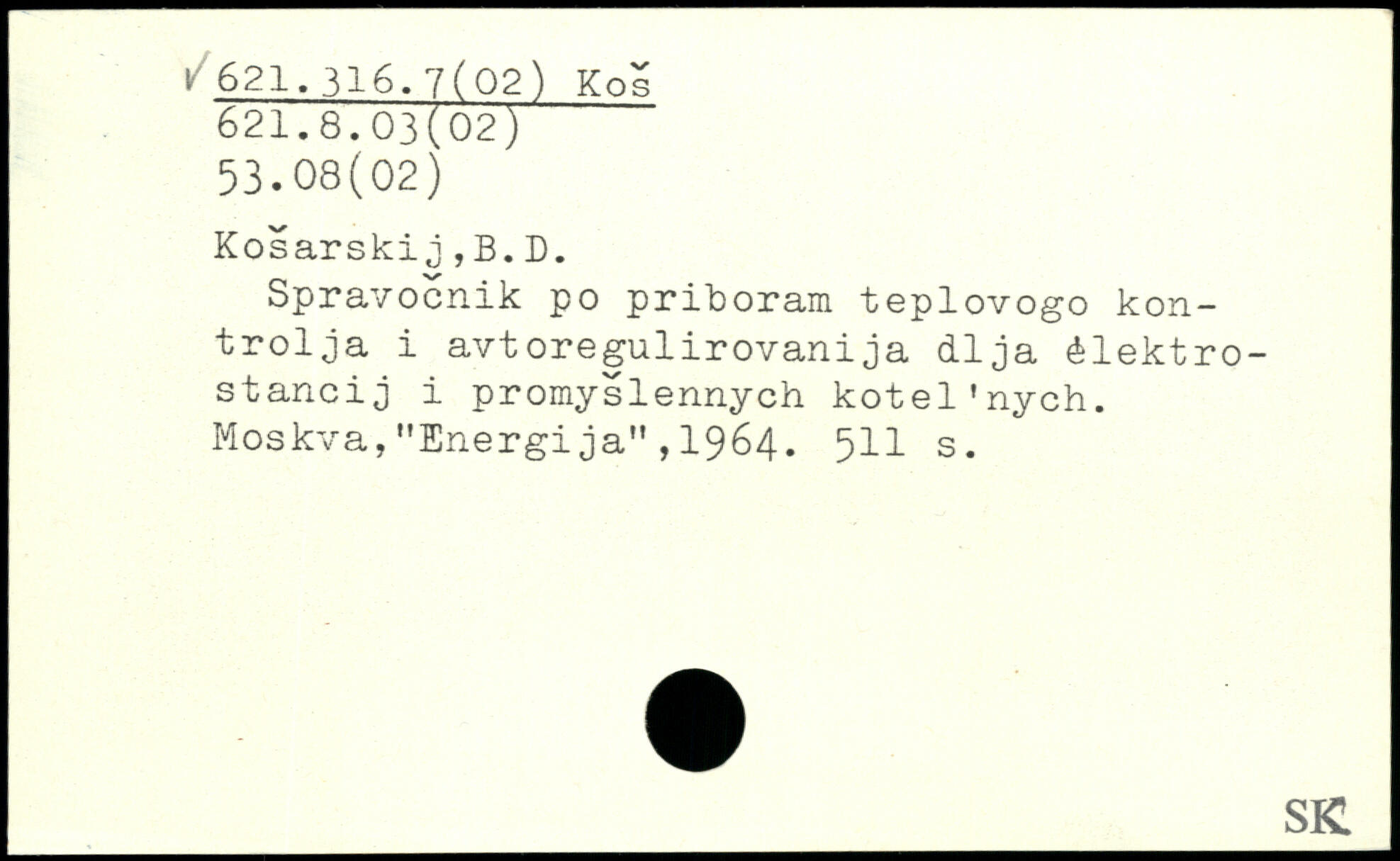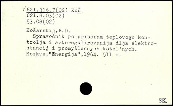 Spravocnik po priboram teplovogo kontrolja i avtoregulirovanija dija élektro-stancij i promyslennych kotel'nych. Moskva,"Energija",1964. 5II s.