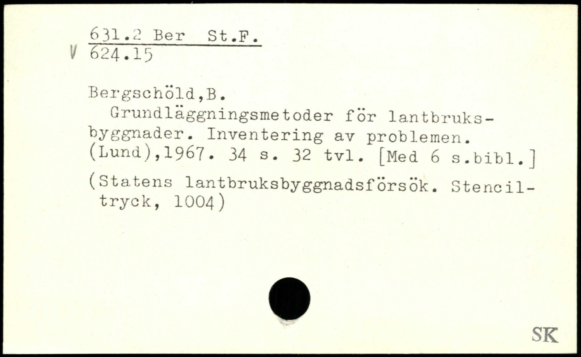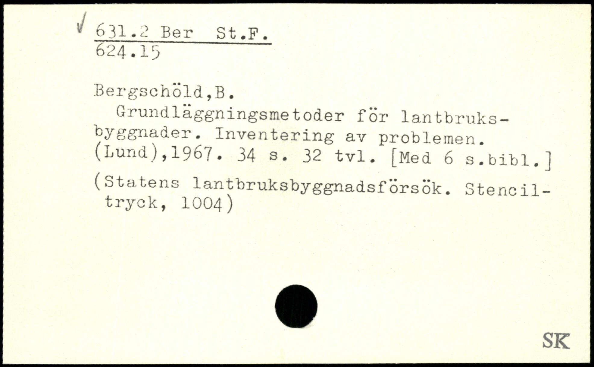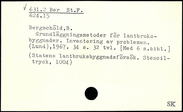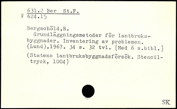 Grundläggningsmetoder för lantbruksbyggnader. Inventering av problemen. (Lund),1967.