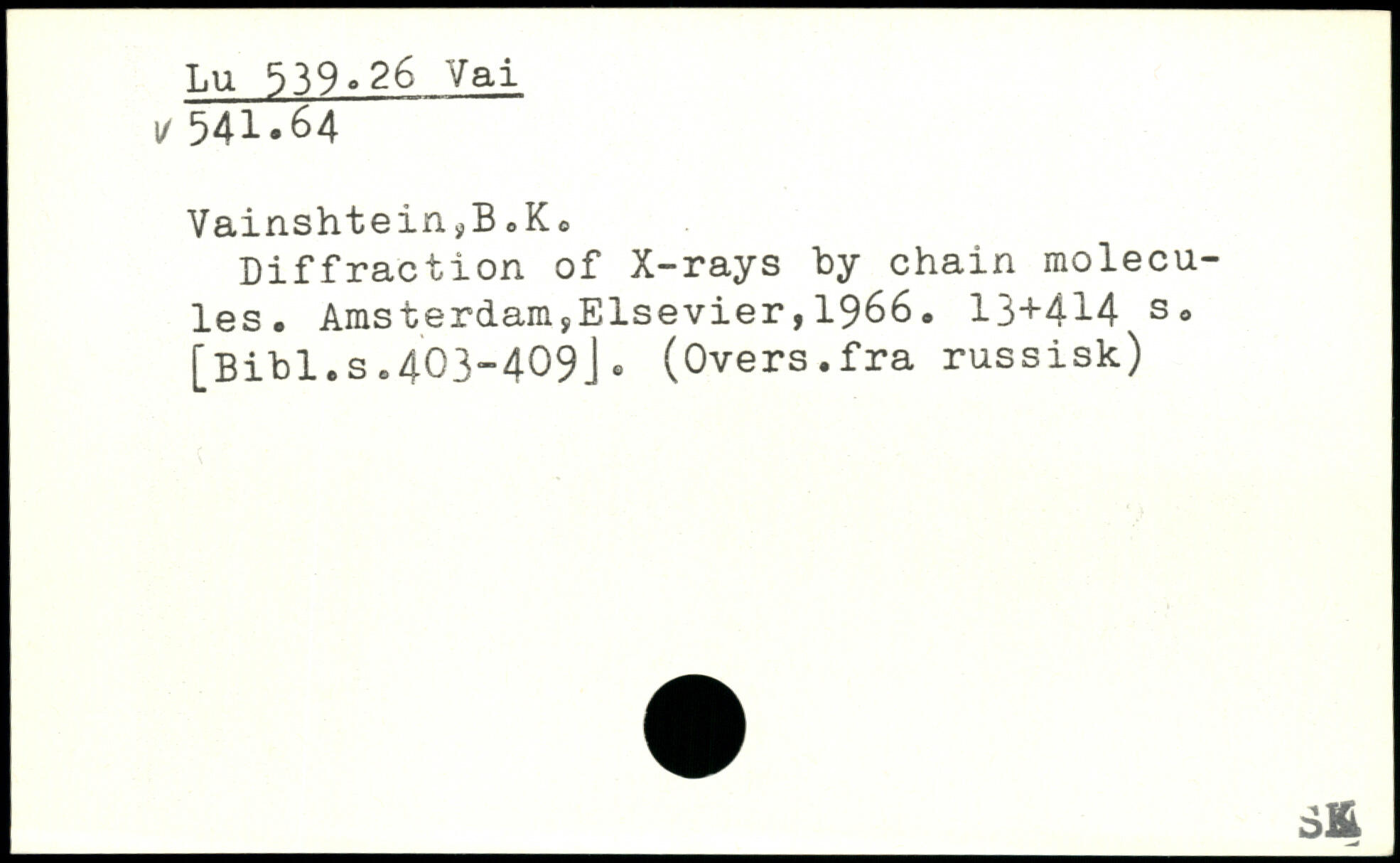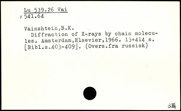 Vainshtein,B eKe Diffraction of X-rays by chain molecules. AmsterdamjElsevier,1966. 13+414