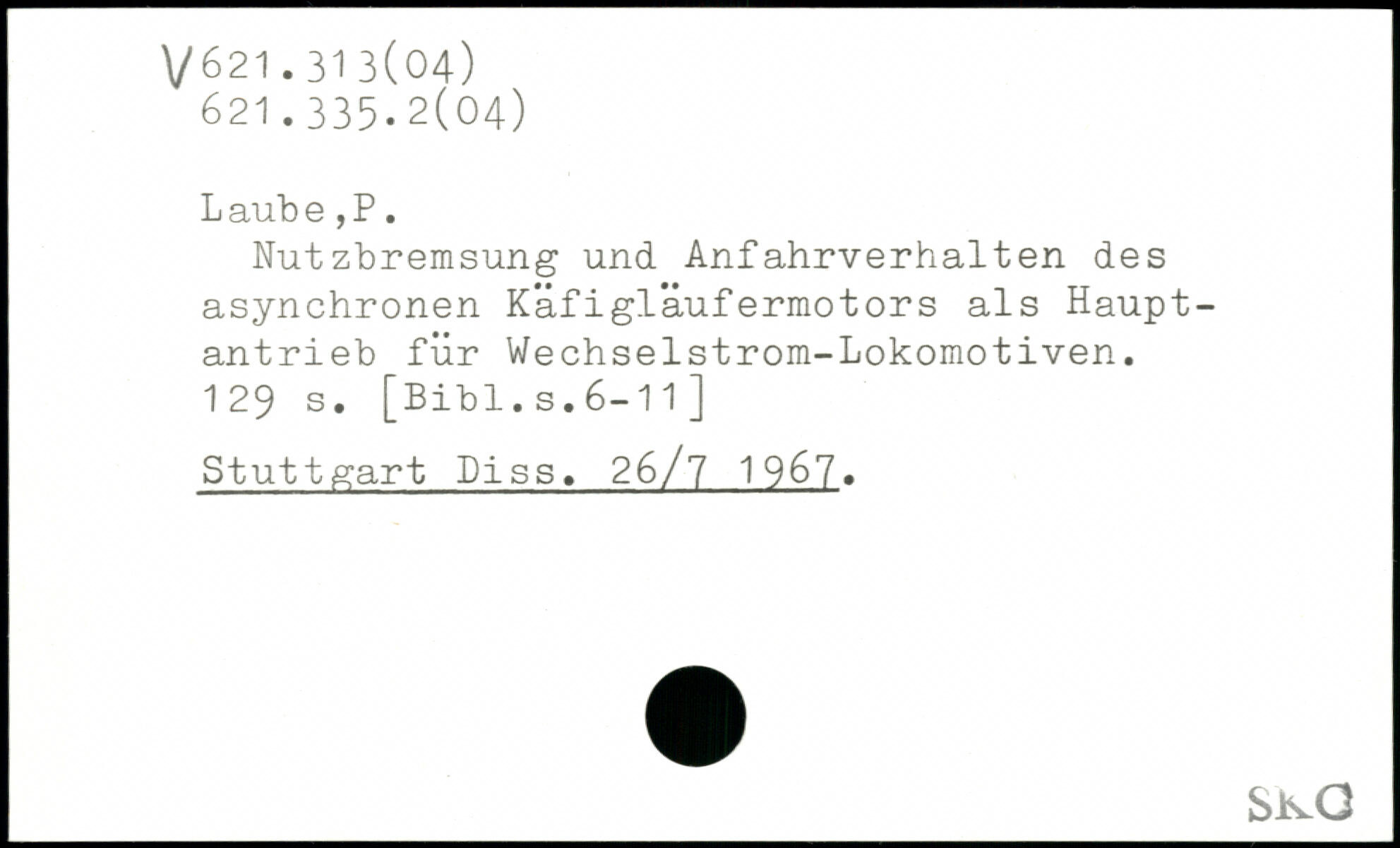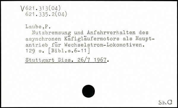 L aub e, P. Nutzbremsung und Anfahrverhalten des asynchronen Käfigläufermotors als Hauptantrieb für Wechselstrom-Lokomotiven.