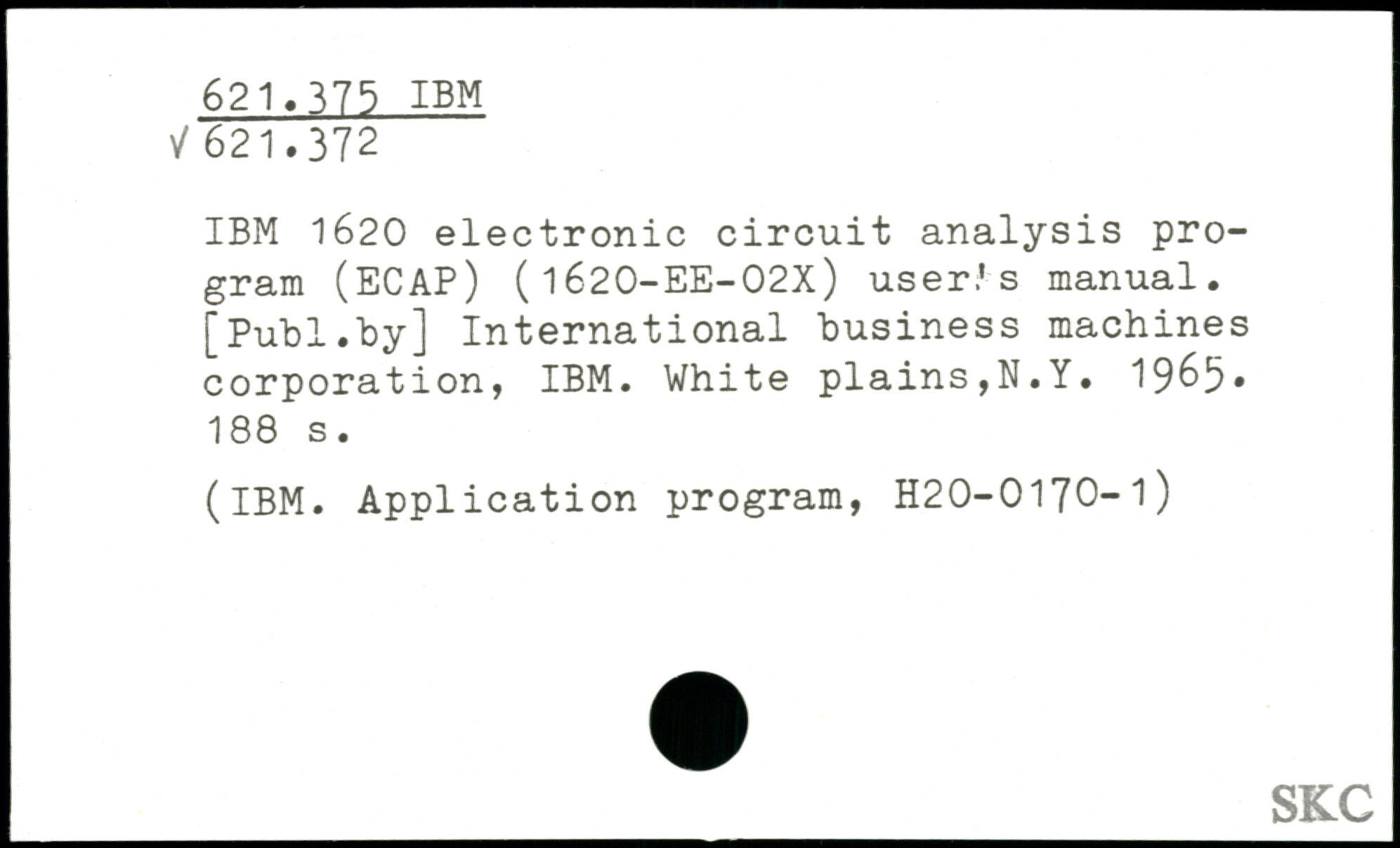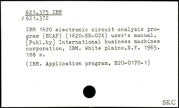 IBM 1620 electronic circuit analysis program (ECAP) ( 1620-EE-02X) user.'s manual.