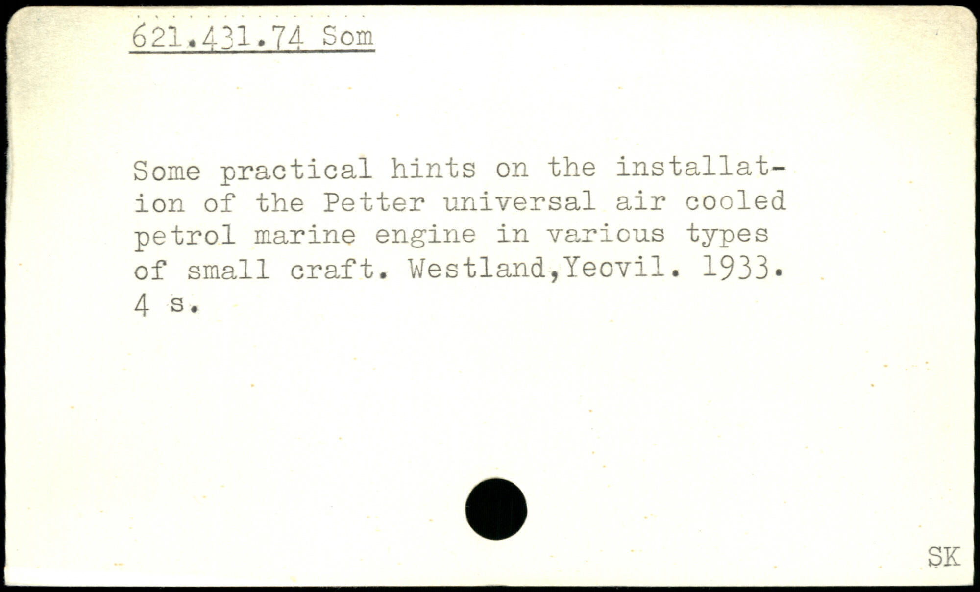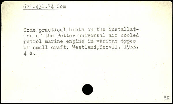 Some practical hints on the installation of the Petter universal air cooled petrol marine engine in various types of small craft. Westland,Yeovil. 1933
