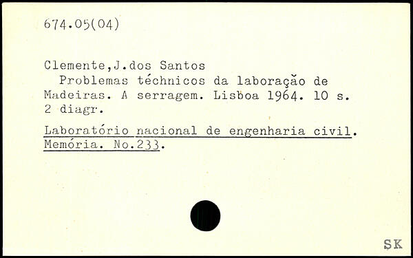 Clemente,J.dos Santos Problemas téchnicos da laboragäo de Madeiras. Å serragem. Lisboa 1964.