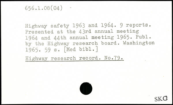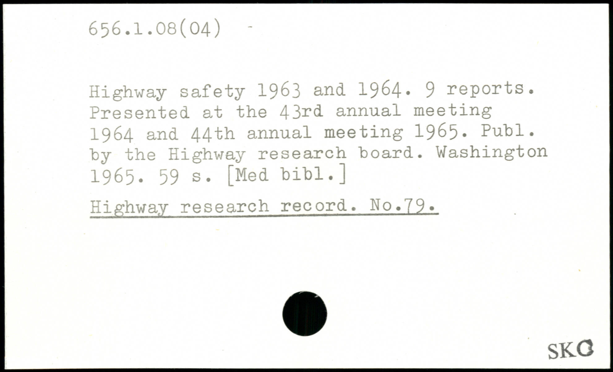Highway safety 1963 and. 1964- 9 reports. Presented at the 43rd annual meeting 1964 and 44th annual meeting 1965. Puhl. hy the Highway research board.