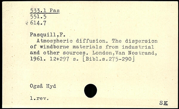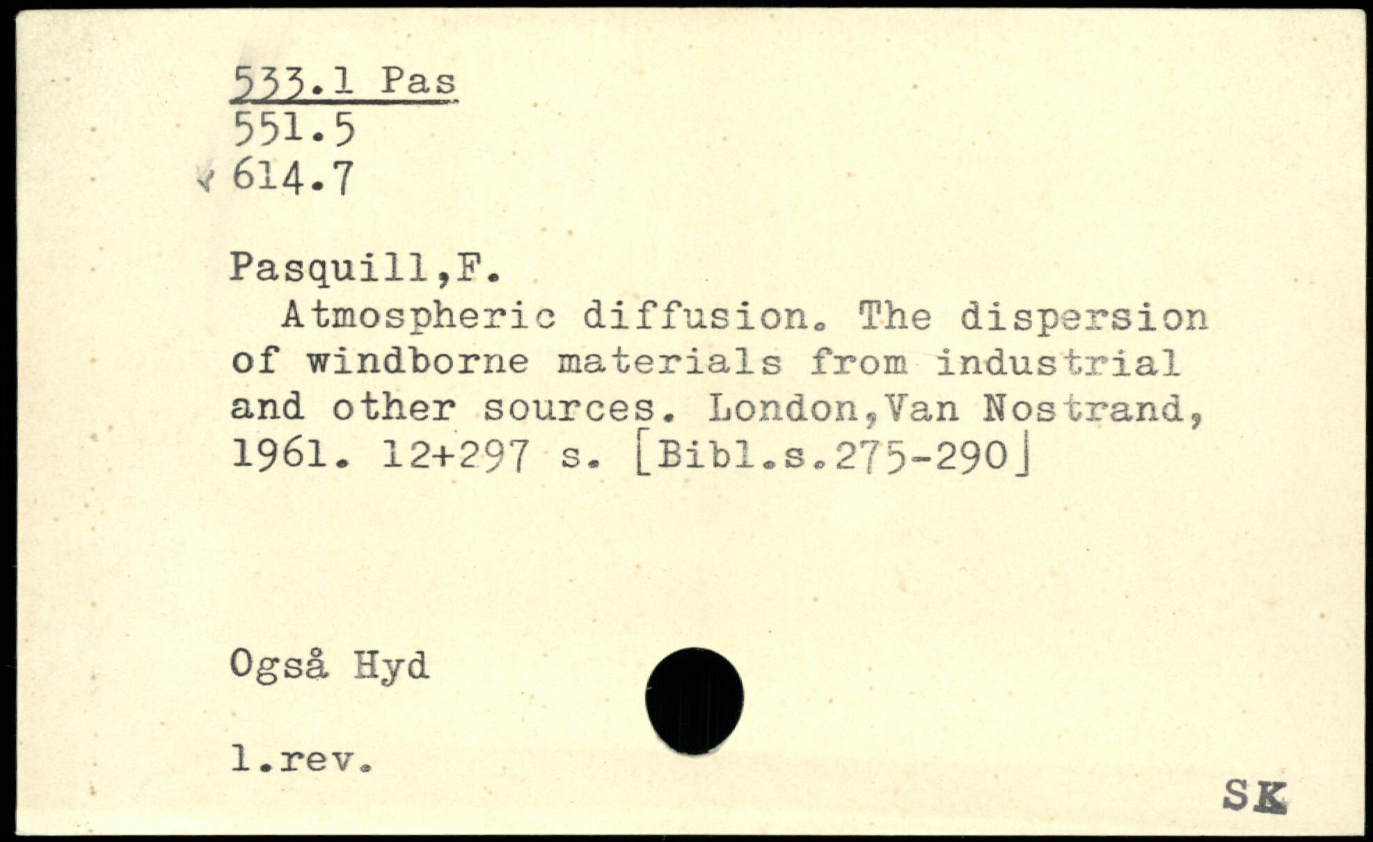 Atmospheric diffusion. The dispersion i of windborne materials from industrial and other sources.