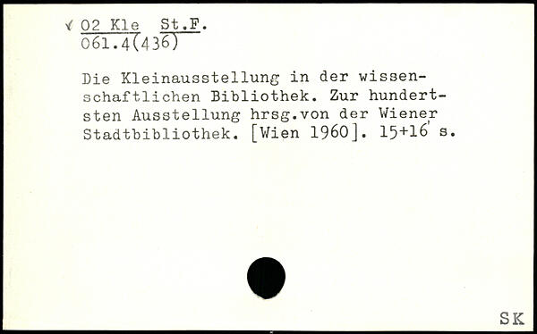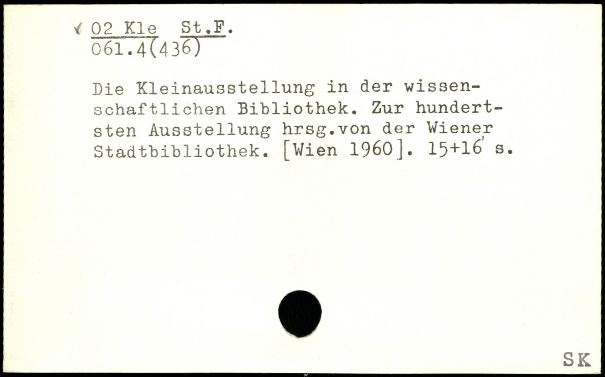 Die Kleinausstellung in der wissenschaftlichen Bibliothek. Zur hundertsten Ausstellung hrsg.von der Wiener Stadtbibliothek.