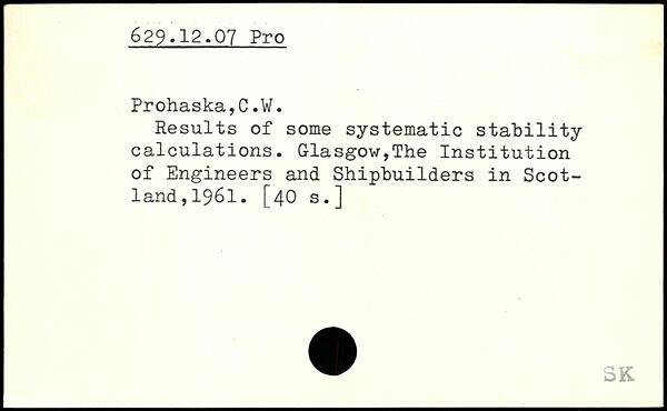 Results of some systematic stability calculations. Glasgow,The Institution of Engineers and Shipbuilders in Scotland, 1961. [