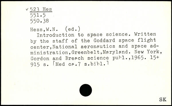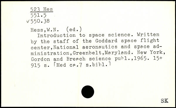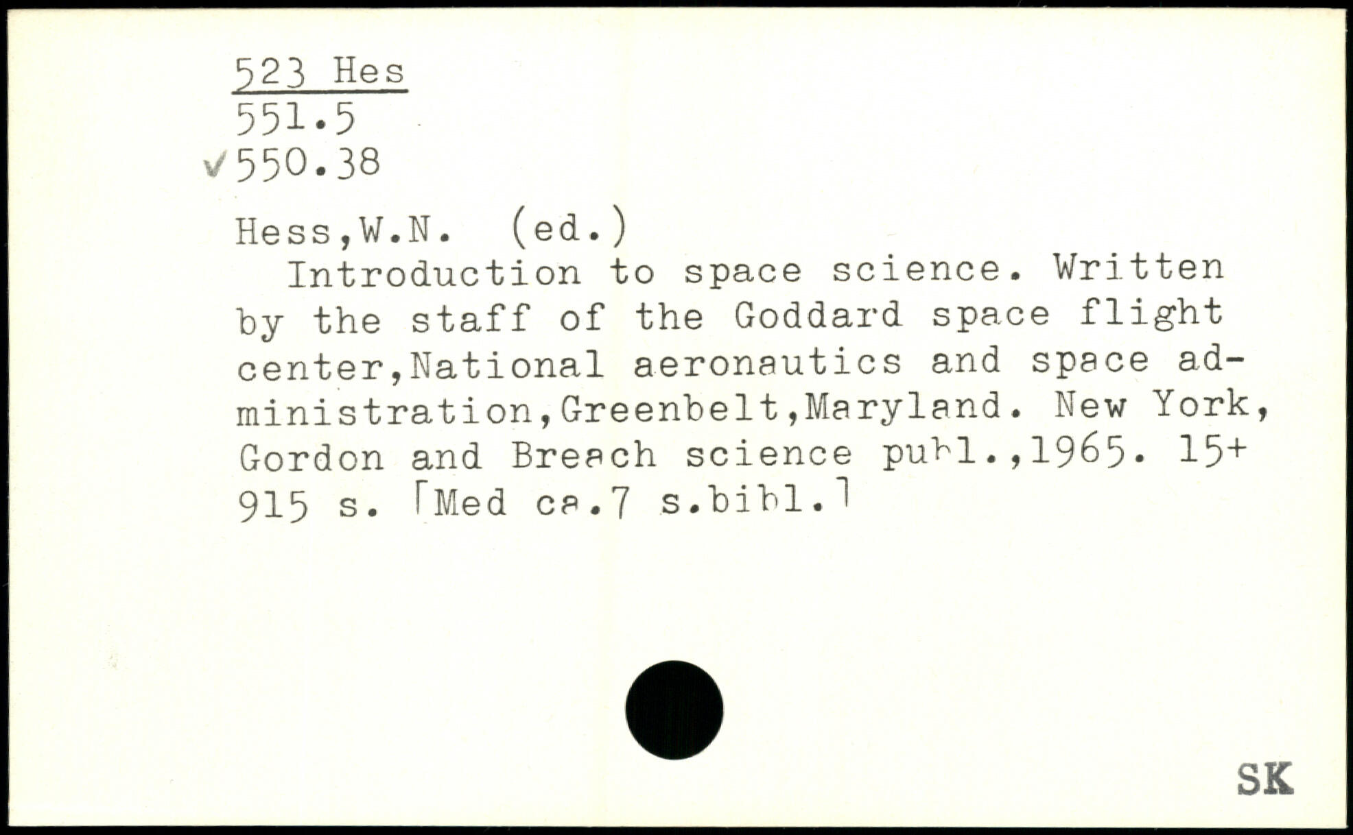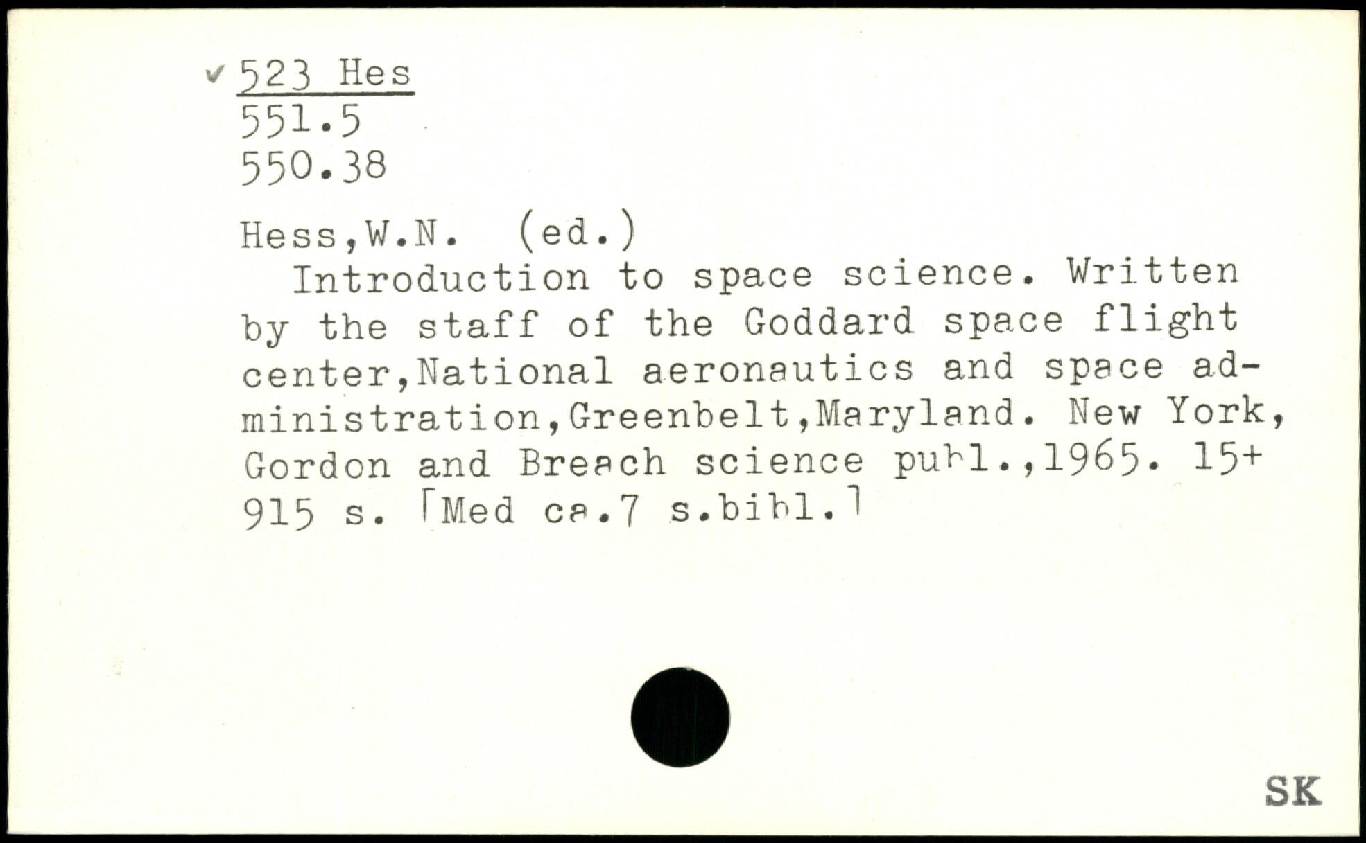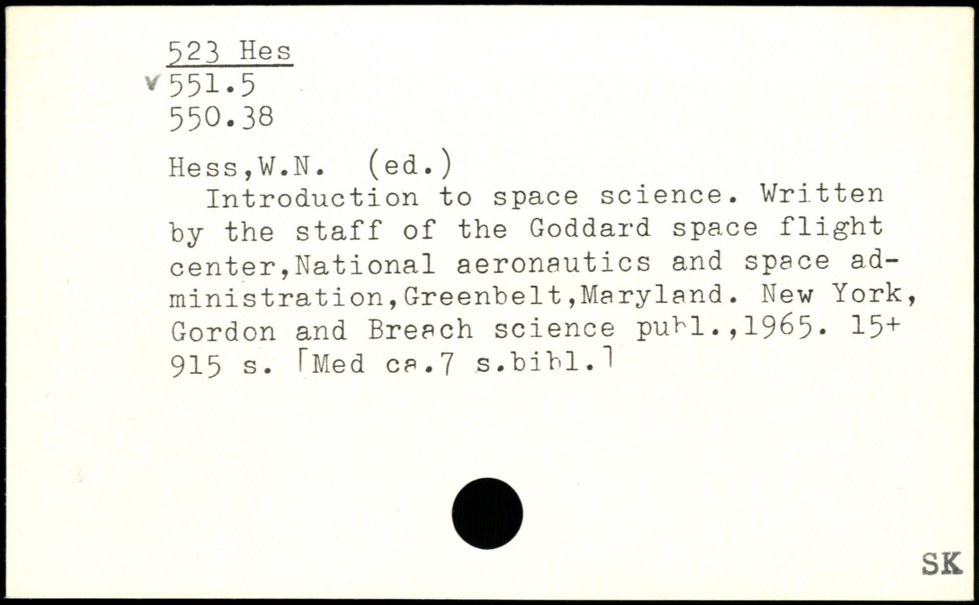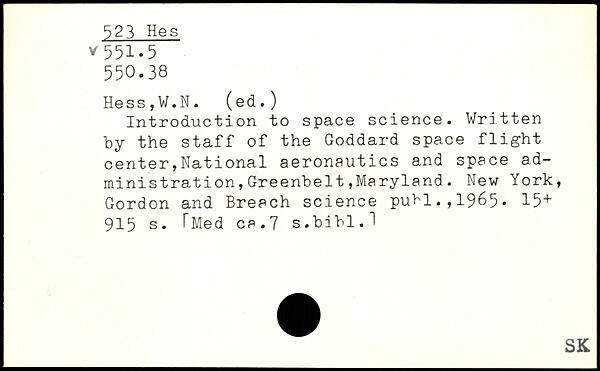 Introduction to space science. Written by the staff of the Goddard space flight center,National aeronautics and space administration , Greenbelt ,Maryland. New York, Gordon and Breach science puhl.,1965- 15+