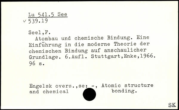 Atombau und chemische Bindung. Eine Einführung in die moderne Theorie der chemischen Bindung auf anschaulicher Grundlage.
