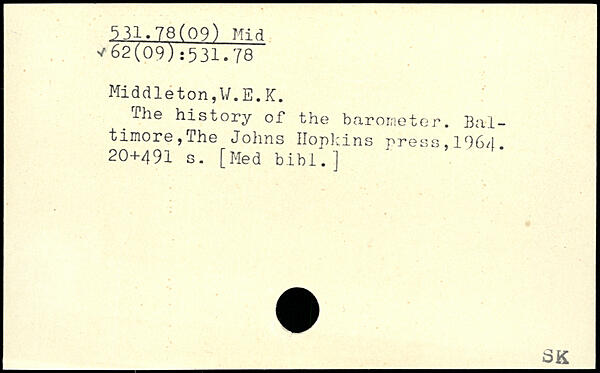 Ihe history of the barometer. Baltimore,The Johns Hopkins press,196/l.