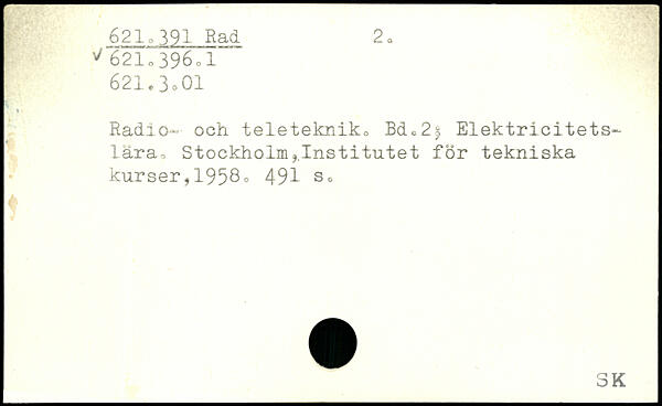 Radio- och teletekniko Bd,2§ Elektricitets,-lärao Stockholm,.Institutet för tekniska kurser,1958=