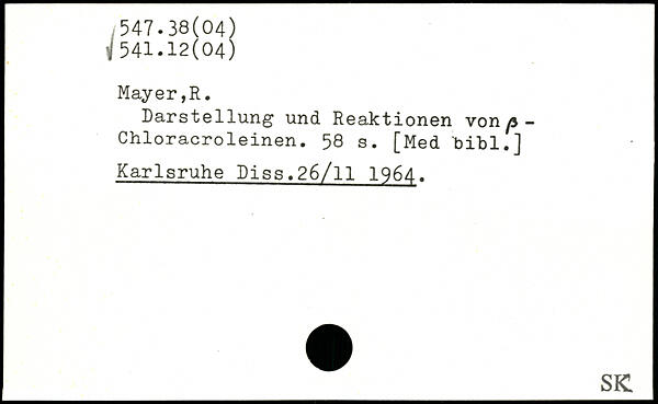 Darstellung und Reaktionen vonp -Chloracroleinen.