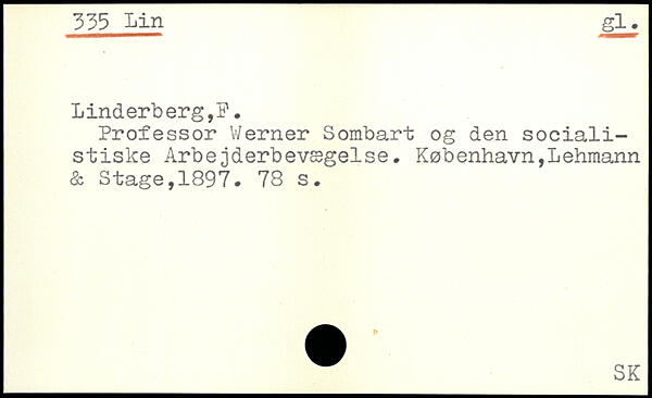 Lin gi. Linderberg,P. Professor Werner Sombart og den socialistiske Arbejderbevægelse. KøbenhavnfLehmann & Stage,1897.