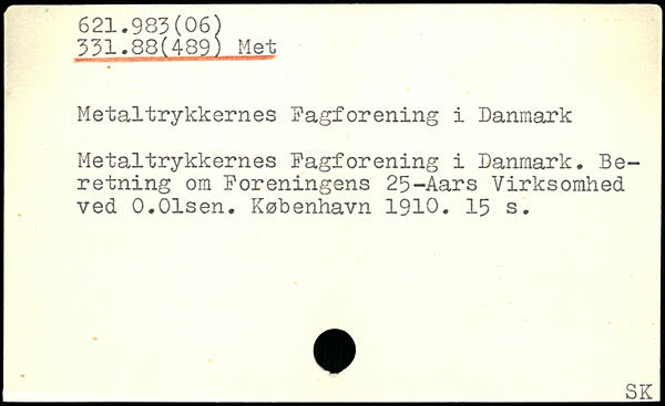 Metaltrykkernes fagforening i Danmark Metaltrykkernes Fagforening i Danmark. Beretning om Foreningens 25-Aars Virksomhed ved 0.Olsen.