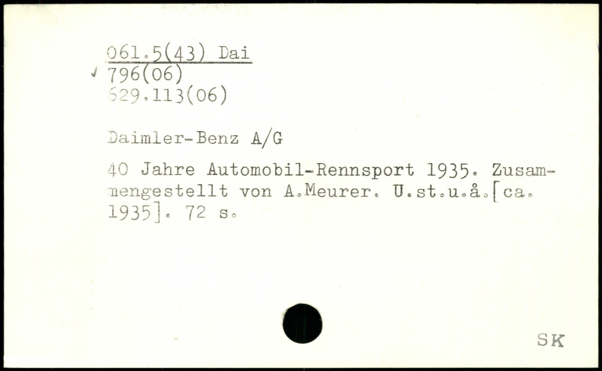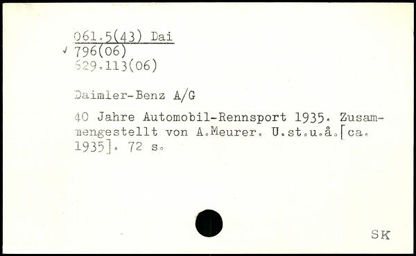 Daimler-Benz a/G 40 Jahre Automobil-Rennsport 1935. Zusam-mengestellt von A,Meurer, ü. st 0u<>åa [ca, 1935].