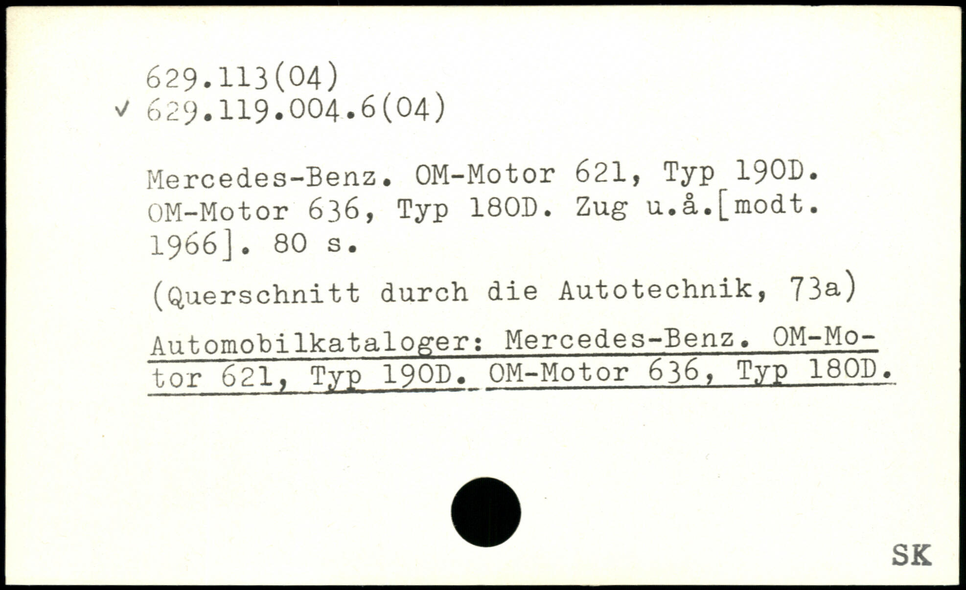 Mercedes-Benz. OM-Motor 621, Typ 190D. OM-Motor 636, Typ 180D. Zug u.a.[modt. 1966].