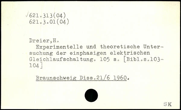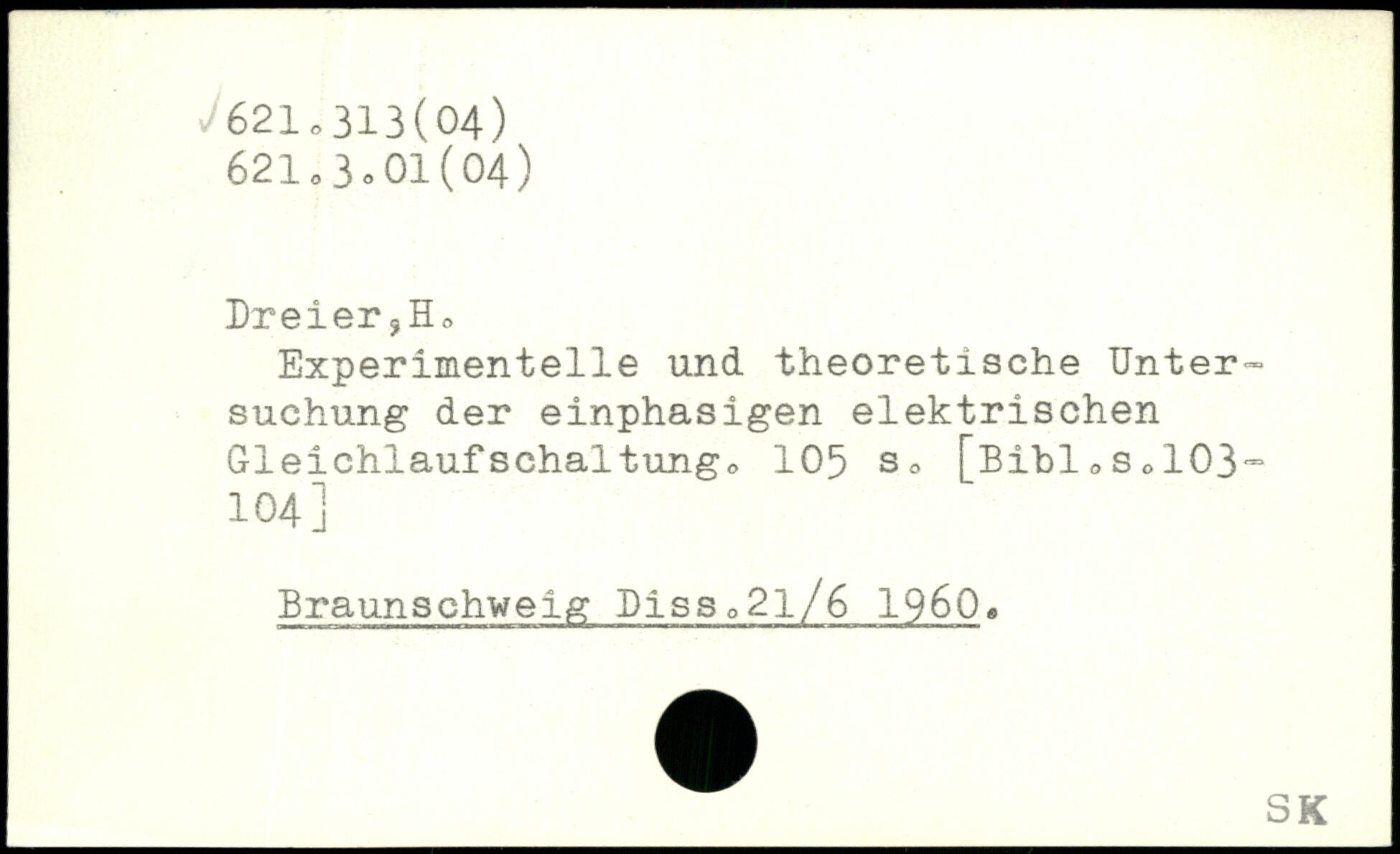 Dreier?Ho Experimentelle und theoretische Untersuchung der einphasigen elektrischen Gleichlaufschaltungo 105 3. [Bihl0s0103“ 104] Braunschweig Diss02l/6 1960