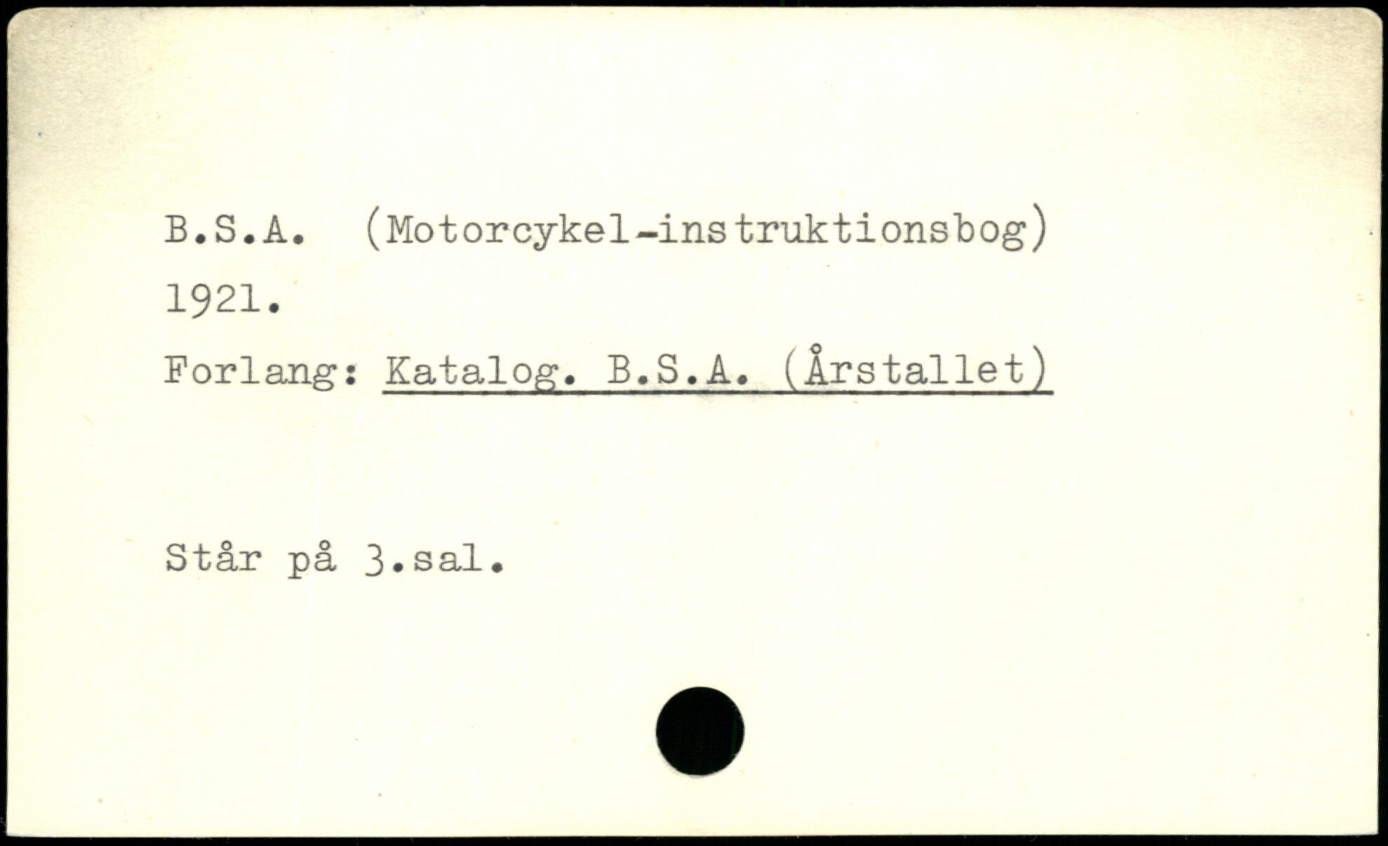 B.S.A. ( Mo torcykel-instruktionsbog) 1921. Forlang: Katalog. B.S.A. (Årstallet) Står på 3,sal.