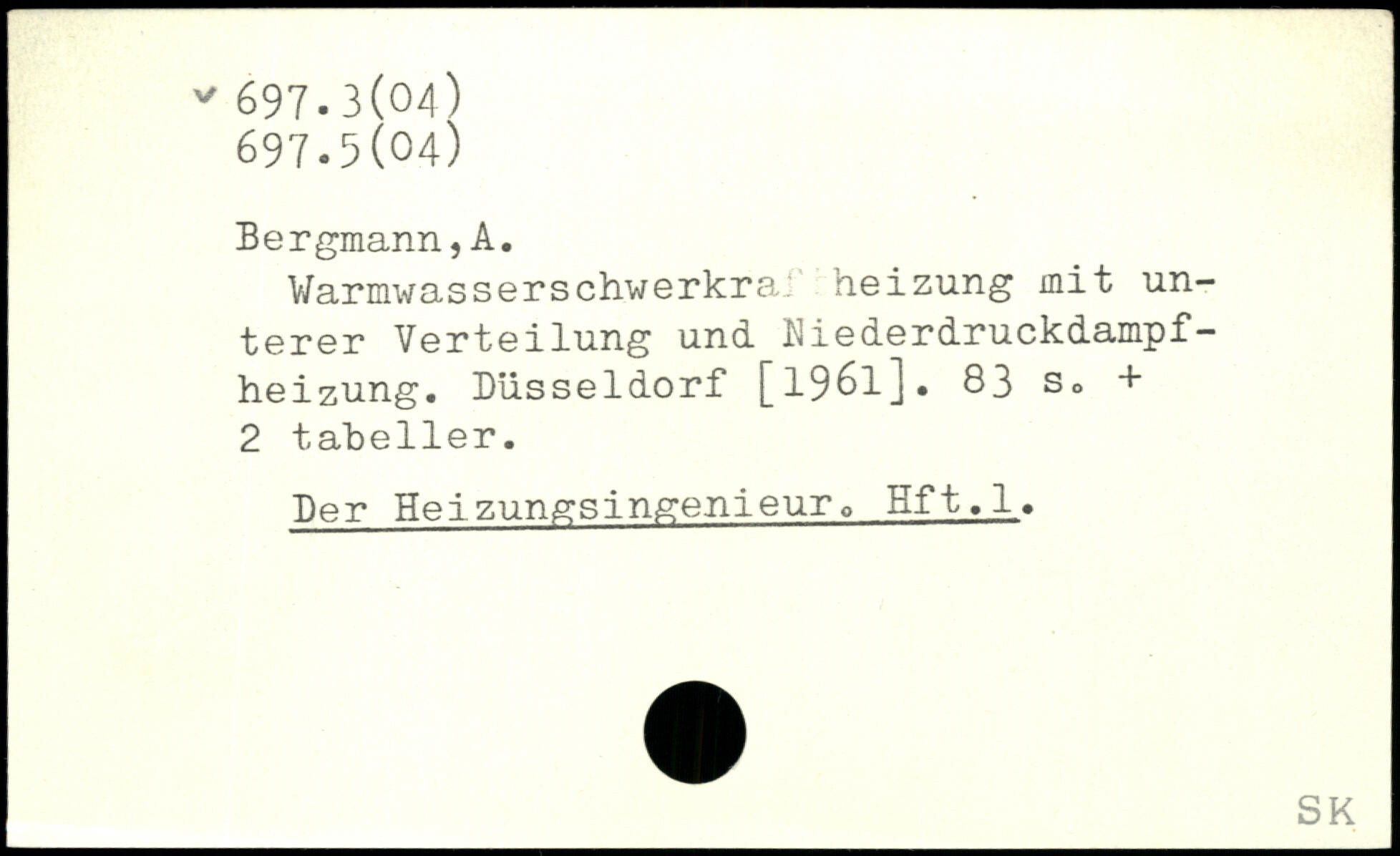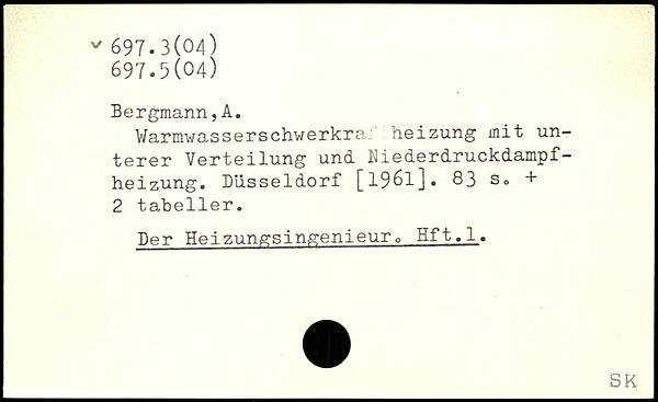 Warmwasserschwerkra: heizung mit un terer Verteilung und Niederdruckdampfheizung. Düsseldorf [1961].