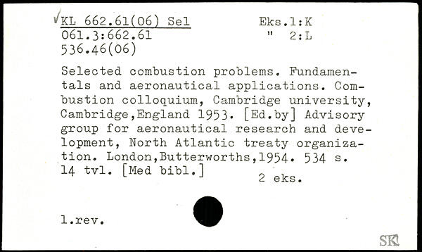Selected combustion problems. Fundamentals and aeronautical applications. Combustion colloquium, Cambridge university, Cambridge,England 1953.