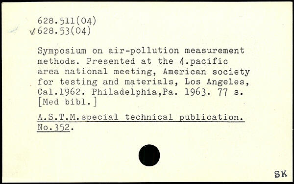 Symposium on air-pollution measurement methods. Presented at the 4.pacific area national meeting, American society for testing and materials, Los Angeles, Cal.1962. Philadelphia,Pa. 1963.