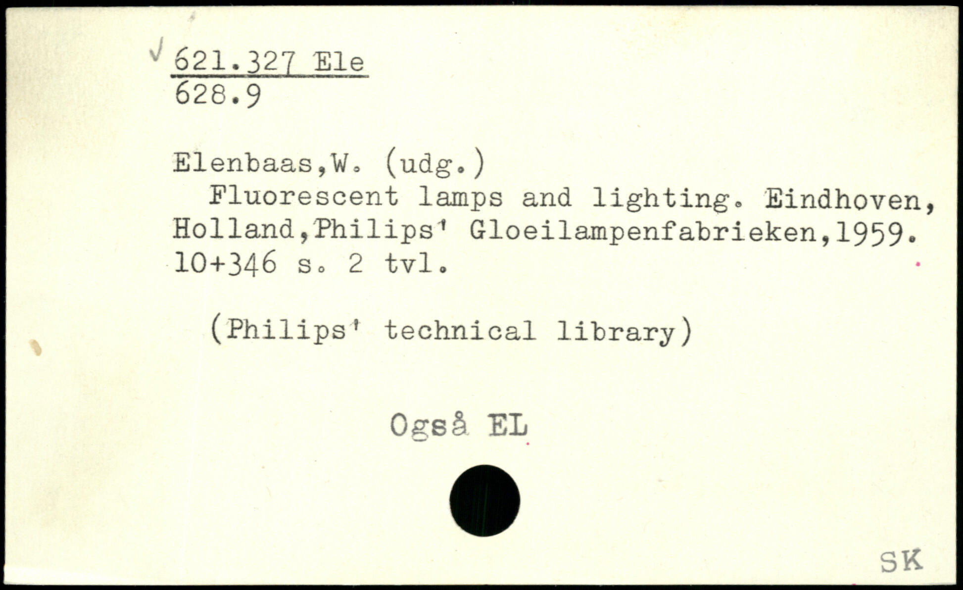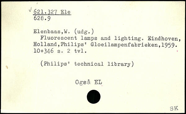 Elenbaas,W = (udg.) Fluorescent lamps and lighting. Eindhoven, Holland,Philips1 Gloeilampenfabrieken,1959, IO