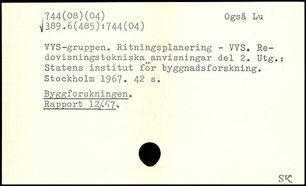 VVS-gruppen. Ritningsplanering - VYS. Re-dovisningstekniska anvisningar del 2. Utg. : Statens institut for byggnadsforskning.
