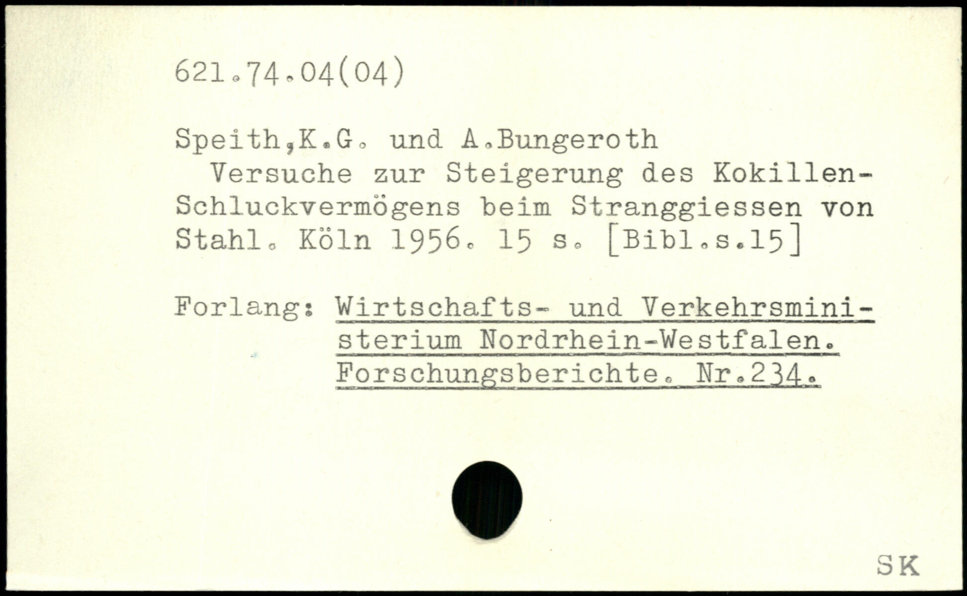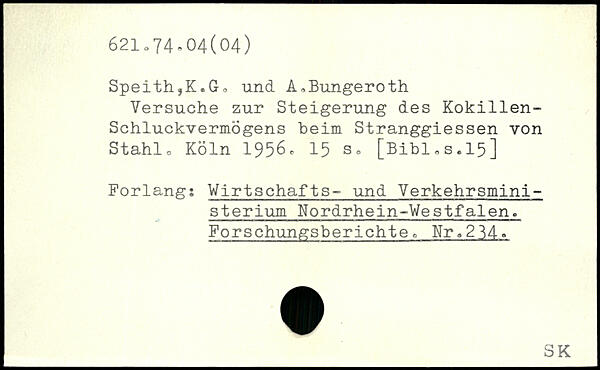 Speith,K.G, und A,Bungeroth Versuche zur Steigerung des Kokillen-Schluckvermögens beim Stranggiessen von Stahlo