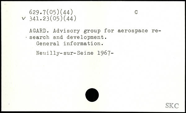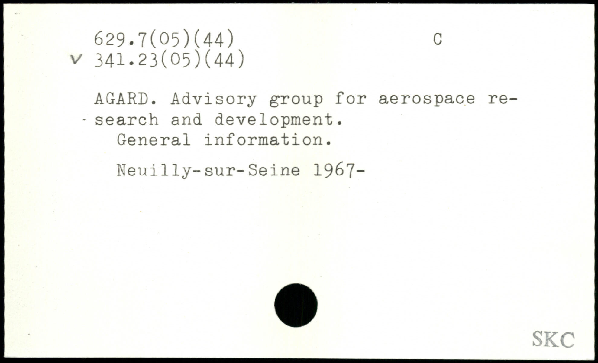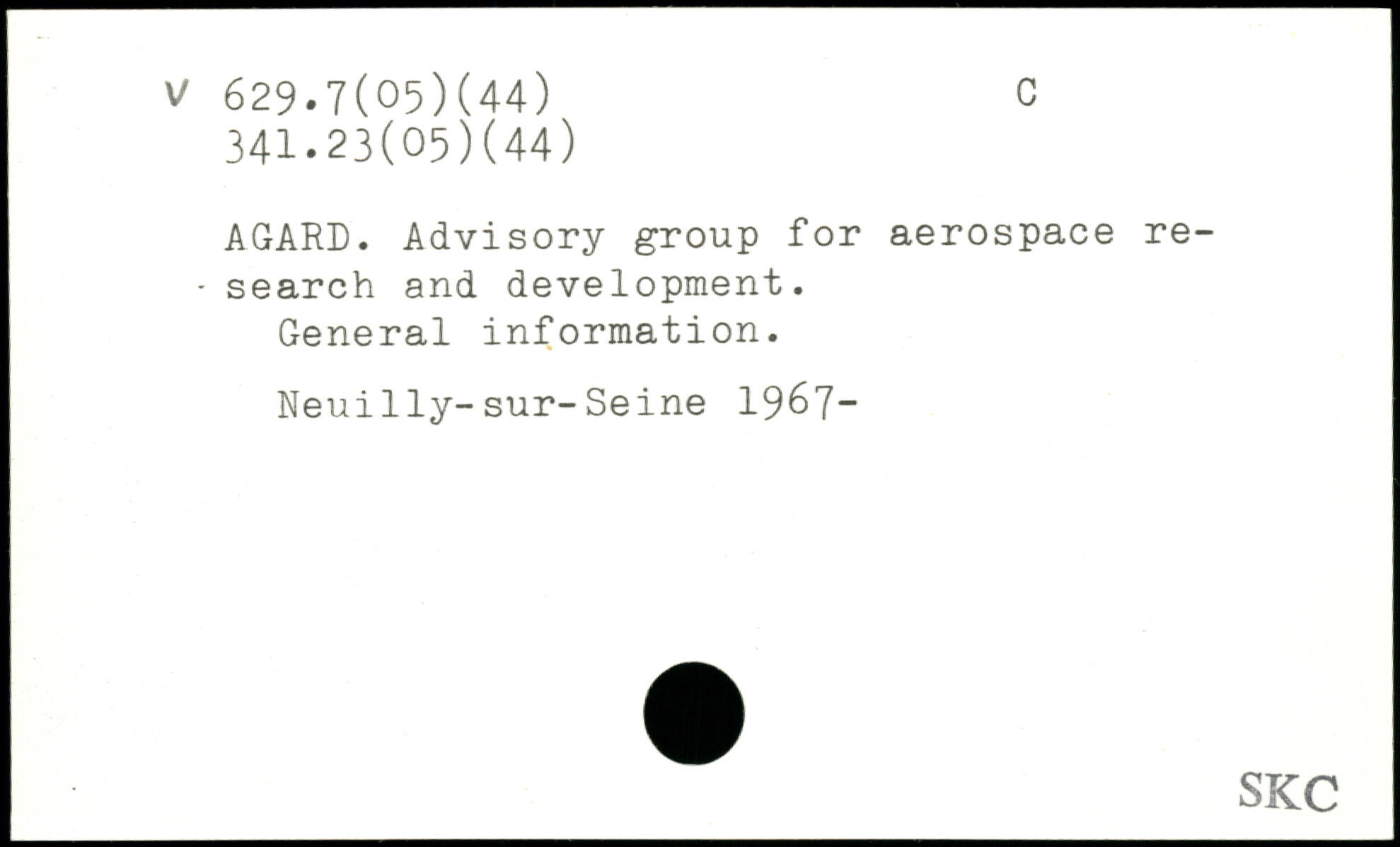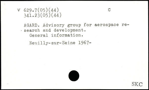 AGARD. Advisory group for aerospace re-- search and development. General information. Neuilly-sur-Seine 1967-