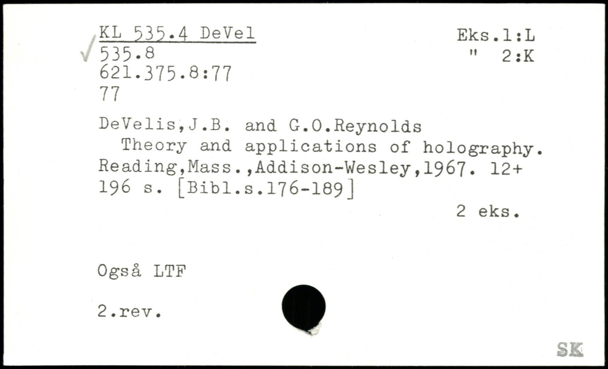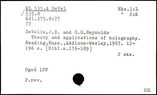 DeVelis,J.B. and G.0.Reynolds Theory and applications of holography.